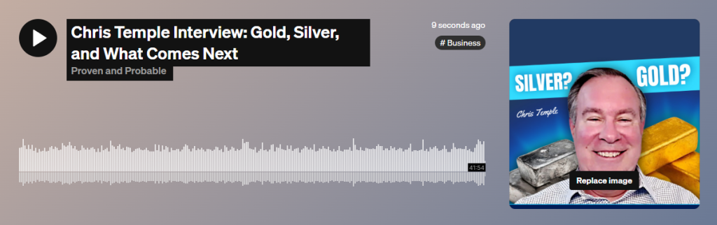 Categories Base Metals Energy Exclusive Interviews Junior Mining Precious Metals Chris Temple Interview: Gold, Silver, and What Comes Next Post author By admin Post date January 14, 2026 Rumble: https://rumble.com/v74c700-chris-temple-interview-gold-silver-and-what-comes-next.html Tags #AndrewBowering, #APGO, #ApolloSilver, #ChrisTemple, #EricSprott, #Gold, #JuniorMining, #MauriceJackson, #NationalInvestor, #PreciuosMetals, #ProvenAndProbable, #RossMcElroy, #Silver, #Trump ← Metalsource Has the First Silver Mine Operated in the U.S. → Scout Discoveries Provides Phase I Drill Program Update at the Cuddy Mountain Porphyry Copper Project, Idaho